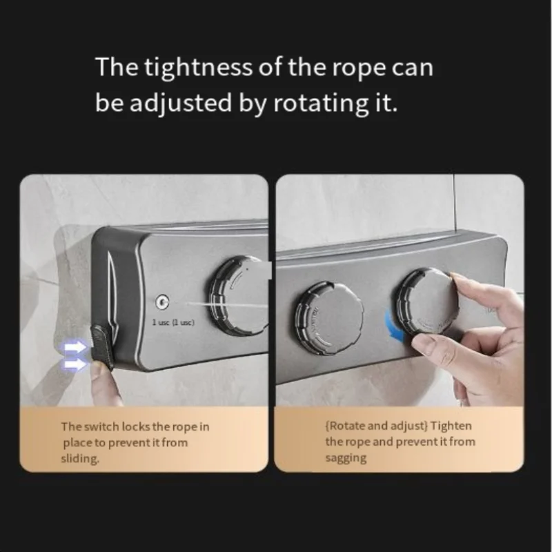 【Strong Capacity】: The adjustable clothesline adopts double ropes design, allows a maximum extension of 13.8 feet and a maximum load-bearing weight of 44 pounds for each line, which can hold more clothes. You can adjust the length freely according to your room size.