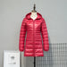 Stay stylish and cozy during the cooler months with this versatile and fashionable women's mid-length down jacket. Perfect for autumn and winter, this lightweight coat offers a slim fit with an oversized look, making it both flattering and comfortable. The jacket features a sleek urban style, with practical elements like zippered pockets and a clean, modern design.