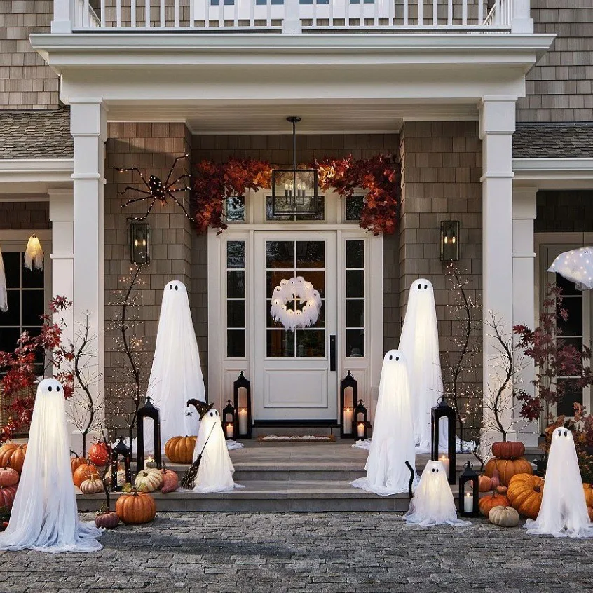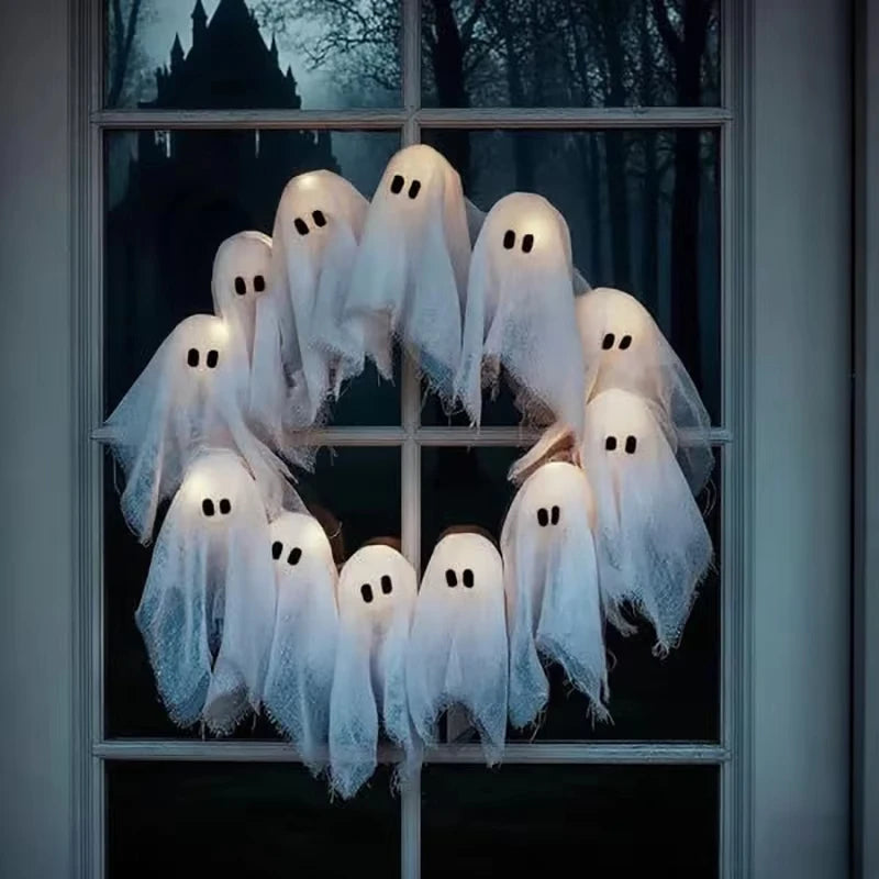 Featuring 12 LED lights, the white ghost garland creates a hauntingly beautiful ambiance for Halloween.