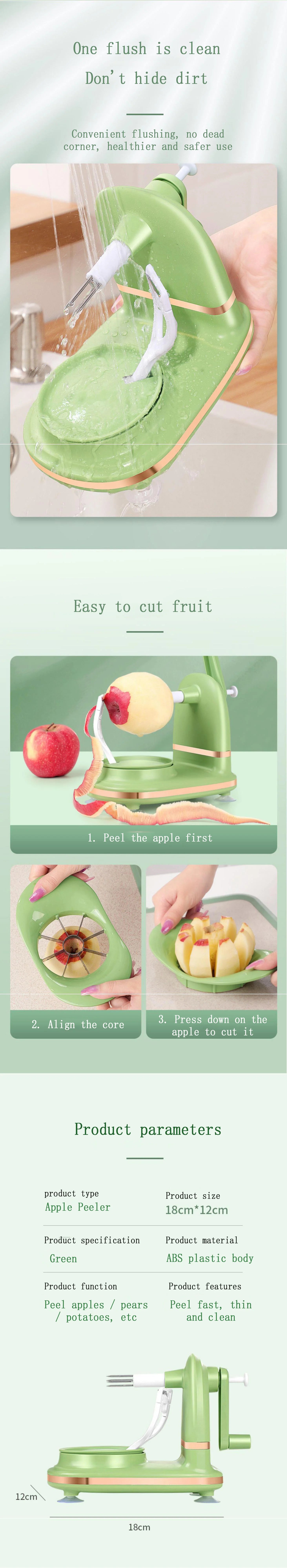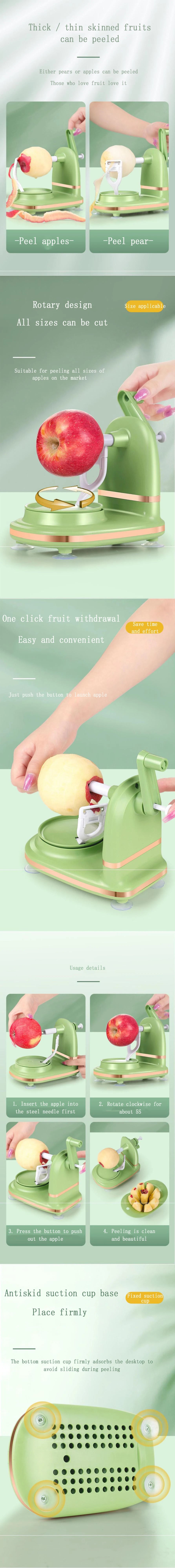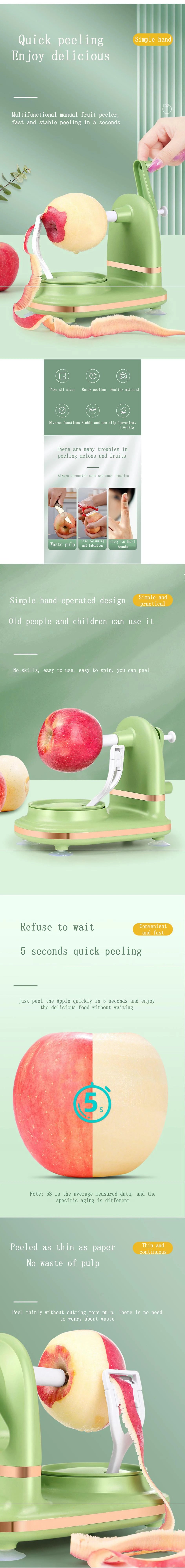 Round with the rotating peeling fruit,so fruit skin is thin,does not take a lot of flesh,safe and efficient peeling