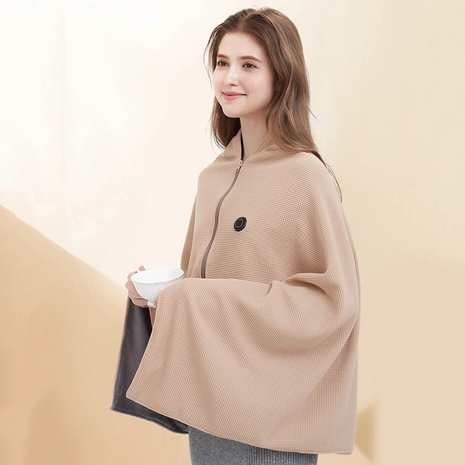 Soft Zipper Shawl Wrap: Warm Heating Scarf