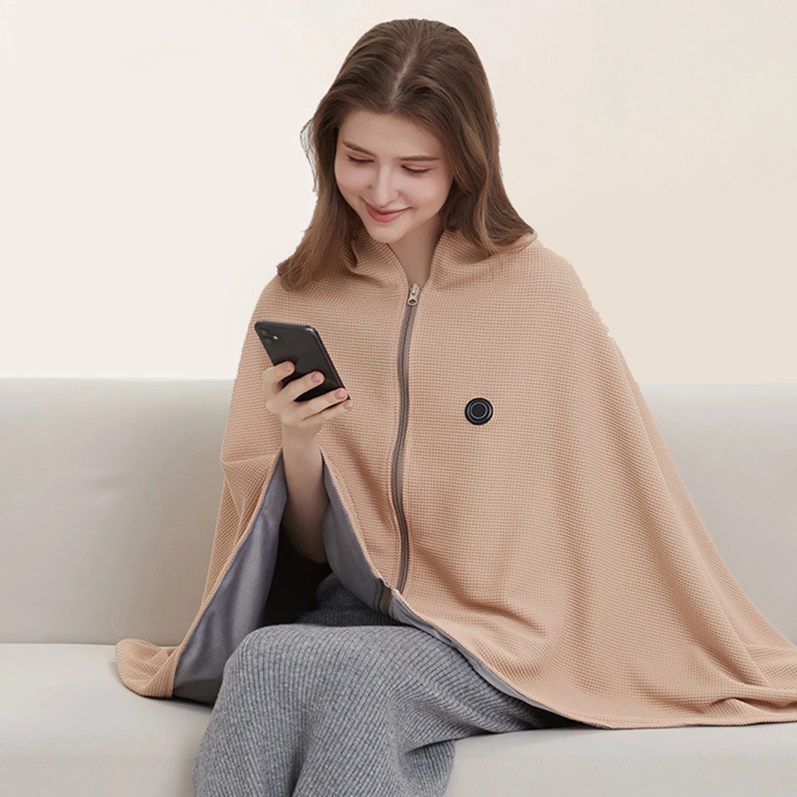 Features: 1.Versatile Design: Experience the excellent in comfort with our heated shawl wraps that convert easily from a cozy shoulder covering to a full-size electric blanket. The clever zip-up style doubles as a wrap or can be laid out for broader warmth, making it ideal for indoor or outdoor use. 2.Long-Lasting Warmth Anywhere: Equipped with a rechargeable power bank, this corded heated blanket provides up to 10 hours of continuous heat per charge. Whether you're traveling, camping, working, or lounging at home, take your warmth and comfort wherever you go. 3.Quick Heating Performance: Our soft zipper shawl wrap features advanced carbon fiber technology that heats up in just 3 minutes. Enjoy three adjustable temperature settings for personalized warmth throughout your day. 4.Safe & Convenient: With no cumbersome cords to manage, the warm heating scarf is designed for hassle-free movement. Snap on the zipper for a secure fit, then relax indoors or outdoors knowing you have reliable warmth within reach. 5.Portable Comfort: This electric thermal blanket is lightweight and compact, folding easily to fit in your bag. Enjoy flexible heating solutions, use it as a blanket, lap throw, or fashionable shoulder wrap for instant coziness at work, home, or on the move. Specification: